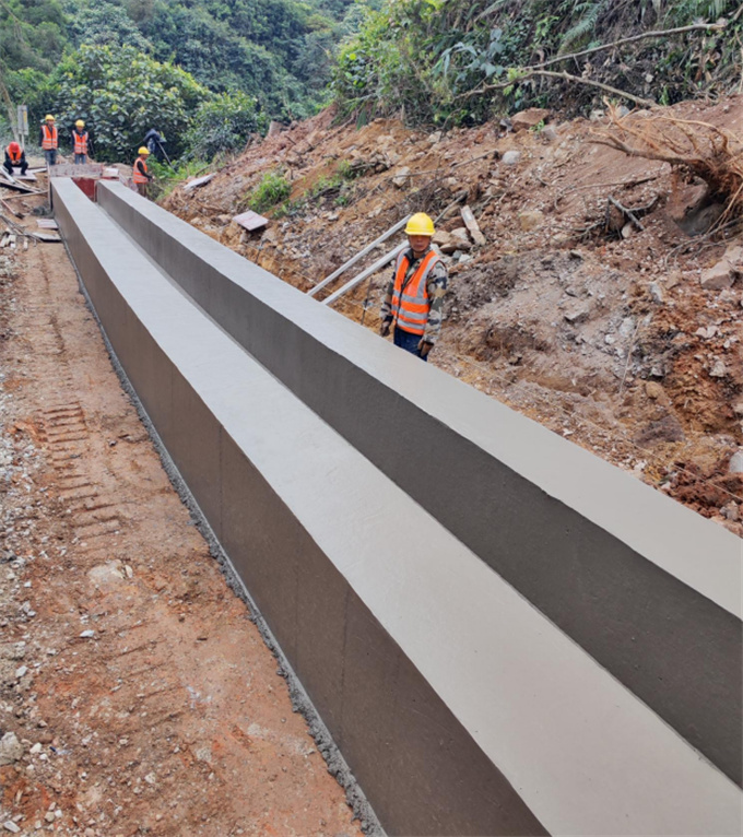 近期在廣西防城港國(guó)道配套排水溝建設(shè)項(xiàng)目中,SP 15 成功攤鋪成型大尺寸水溝整體結(jié)構(gòu)物。成品的外觀線性、結(jié)構(gòu)穩(wěn)定性、均質(zhì)性、密實(shí)度都堪稱精品,再一次得到了施工方及業(yè)主的高度認(rèn)可。