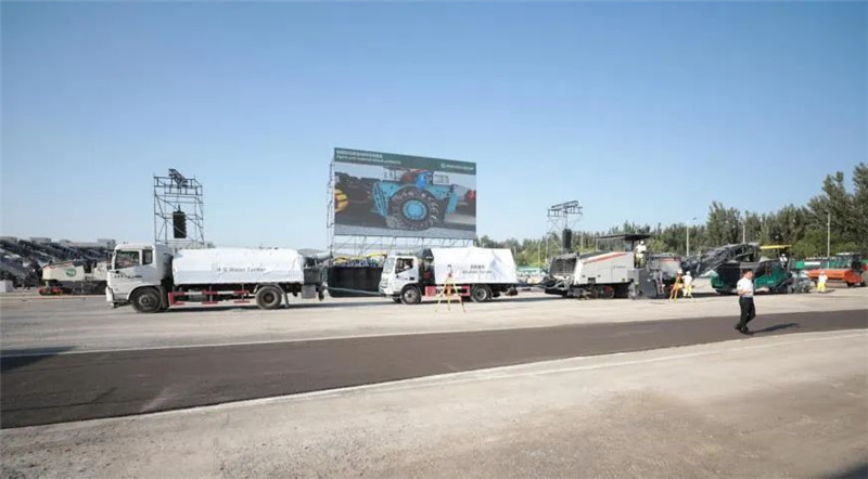 在現(xiàn)場(chǎng)演示環(huán)節(jié),在場(chǎng)的嘉賓及客戶(hù)都對(duì)新技術(shù)表現(xiàn)出了濃厚興趣,通過(guò)現(xiàn)場(chǎng)可以看到 W 380 CR 機(jī)隊(duì)一條再生的工藝,可以直觀感受就地冷再生流程。通過(guò)現(xiàn)場(chǎng)講解人員的講解,可以清晰地了解這項(xiàng)工藝的特點(diǎn),為什么可以具有如此多經(jīng)濟(jì)和環(huán)保效益的原因。