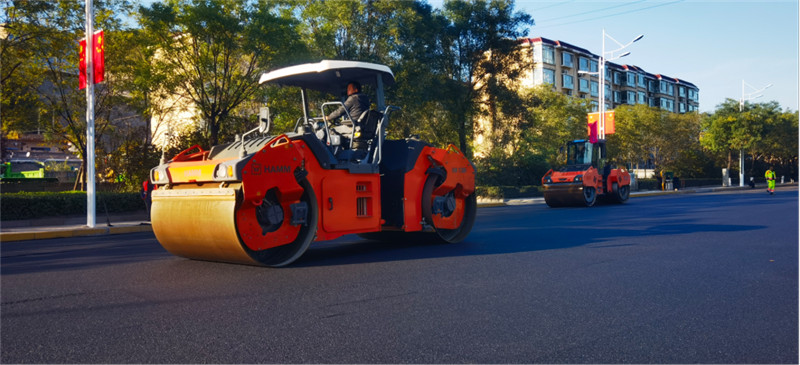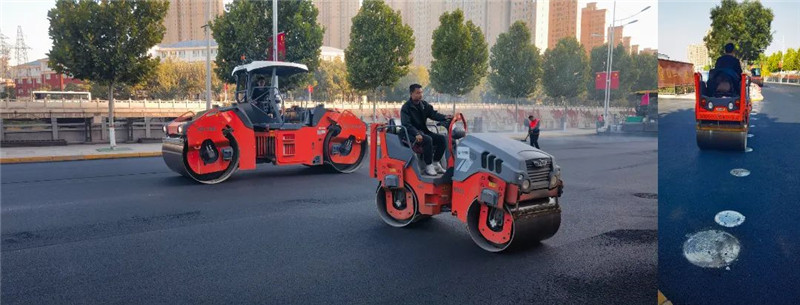 悍馬小型壓路機(jī)則配合大型壓路機(jī)對道路邊緣和過渡面、井蓋邊緣等區(qū)域做壓實(shí)處理,確保壓實(shí)區(qū)域無死角,整個(gè)面層平整度和壓實(shí)度更好