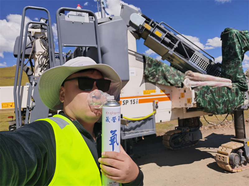 在海拔4700-5200米的地方工作,“英雄氣短”說(shuō)得就是我,不得不氧氣瓶隨身帶,時(shí)不時(shí)吸一口補(bǔ)一補(bǔ)。但是我的 Bro, 好兄弟,SP 15i 那是“英雄本色“,接受住了考驗(yàn)——維特根滑模攤鋪機(jī)干活不打折,效果一如既往的好!