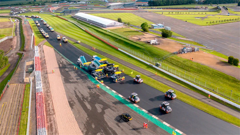在某些情況下,還需要在賽道的指定區(qū)域內(nèi)調(diào)整坡度,這就涉及到銑刨面層,如果有必要還可能需要銑刨粘結(jié)層,隨后使用福格勒攤鋪機(jī)和悍馬壓路機(jī)對新瀝青層進(jìn)行鋪設(shè)和壓實(shí)。