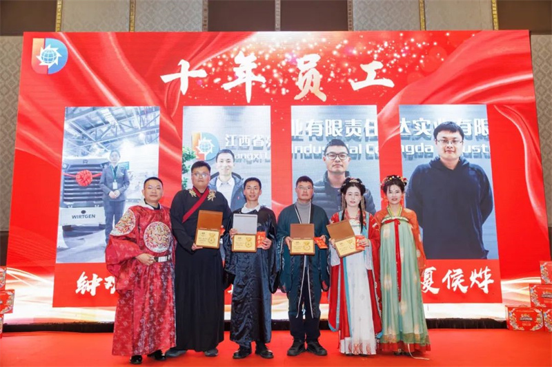 在近一個多小時的歡慶之后,江西亮達的十年員工鐘歡、曾纛、謝科強和夏侯燁紛紛走上臺前,分享了他們在公司十年間的點點滴滴。他們的話語中充滿了對江西亮達的深情和感激,讓在場的每一位觀眾都深受感動。隨后,董事長顏總和總經理盧總親自上臺為這些老員工頒發(fā)了獎項,這不僅是對他們多年辛勤工作的肯定,也激勵著臺下的年輕員工,展示了公司對員工的重視和對未來的期望。十年的志同道合,十年的風雨同舟,十年的同甘共苦;這一刻,是江西亮達團隊凝聚力和堅持精神的生動體現,希望新的一年老員工和新員工們可以齊心協力,在公司中謀求更好地發(fā)展,實現自己的個人價值。