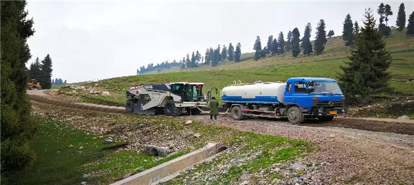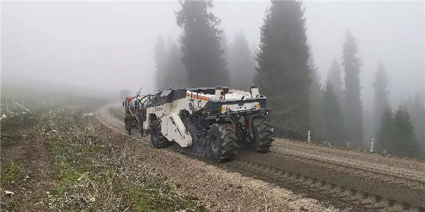 隨著近年來環(huán)保意識提高,過去那種粗放的挖除置換方式已經(jīng)越來越不適應(yīng)當(dāng)前形勢。景區(qū)道路維修施工,砂石及水泥需要從幾百公里外運(yùn)進(jìn)現(xiàn)場,廢棄的材料也無法堆棄,因此要在 20 天內(nèi)完成 3.5 公里基層大修任務(wù),傳統(tǒng)的維修方式顯然無法滿足。2019年,特克斯交通局的專家經(jīng)過對國內(nèi)各種維修方式進(jìn)行認(rèn)真比對和評估,確定采用維特根水泥就地冷再生工藝進(jìn)行基層維修。