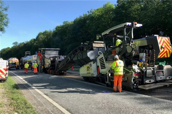 再比如,在實際作業(yè)過程中,維特根集團旗下各品牌設(shè)備還可以組合形成更多環(huán)節(jié)的智能協(xié)同作業(yè)。如上圖,在公路修護過程中,前期通過維特根冷銑刨機對破損的路面進行銑刨,將路面的水穩(wěn)或瀝青舊料進行收集,之后通過克磊鏝破碎篩分設(shè)備對這些舊料進行處理。將破碎篩分后的成品料再經(jīng)過維特根廠拌冷再生設(shè)備添加一定比例的粘結(jié)劑、水和新碎石料后拌和再生成符合公路攤鋪的優(yōu)質(zhì)冷再生混合料。之后通過福格勒攤鋪機將混合料回鋪,再經(jīng)過悍馬壓路機高效壓實,形成優(yōu)質(zhì)的基層或下面層。之后再通過加鋪瀝青面層后,對道路完成高效環(huán)保的修復(fù)。這種一條龍的道路維修作業(yè),體現(xiàn)出維特根集團高效的道路養(yǎng)護理念,各種設(shè)備的智能協(xié)同作用,施工一氣呵成。更重要的是,采用維特根集團智能協(xié)同設(shè)備不僅作業(yè)高效,而且極為環(huán)保,廢料再生更是降低了修護成本,堪稱一舉多得。